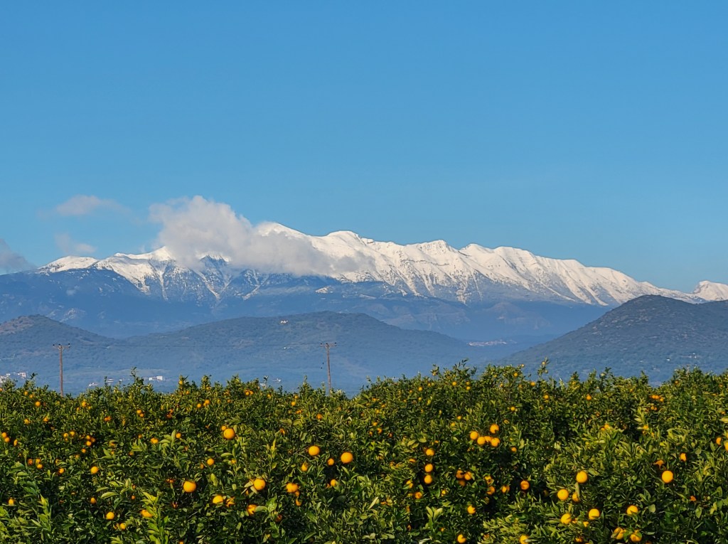 10.01. geschneit und die Orangen warten aufs Pflücken