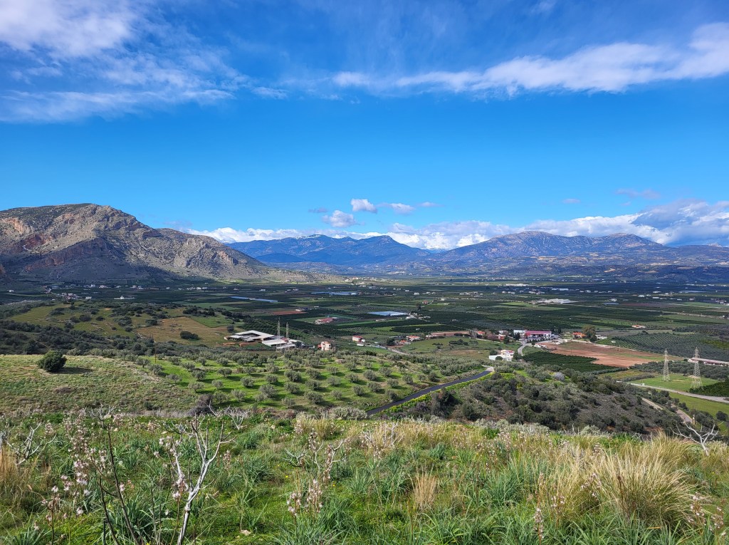 Da ist einerseits Methana die Vulcaninsel mit den herrlichen Ausblicken bis nach Athen und wieder Flamingos, andererseits die Dolinen von Didyma und die nette Schlucht Karafyki. Die schöne Stadt Nafplio mit Ihren zwei Burgen, dann noch das antike Argos mit der Burg Larissa und zu guter letzt das gruselige Hotel und die Enttäuschung bei der Franchthi Höhle.