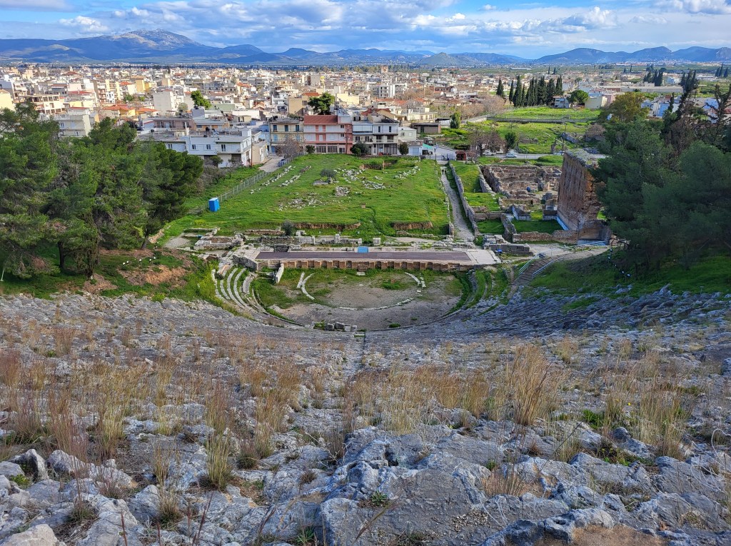 Das antike Argos, mit einer Therme und dem größten Amphitheater Griechenlands, die Sitzplätze wurden präzise in den Fels gemeißelt. Die Akustik ist phänomenal und hat mich genauso beeindruckt wie im Epidaurus, das wir vor 3 Jahren besucht haben. Mein Enkel Luca erzählte mir, dass die Vorlesesäle in den Unis genauso gebaut werden.