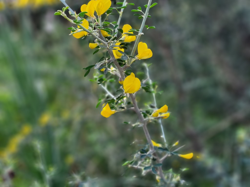Im Januar wird es dann langsam richtig gelb überall. Im Hintergrund waren Mitte Januar die verschneiten Berge zu sehen und am Meer, bzw. im Tal blühte bereits der Stechginster. Dann zog der Ackersenf ein und machte die Olivenhaine zu einem Augenschmaus.
