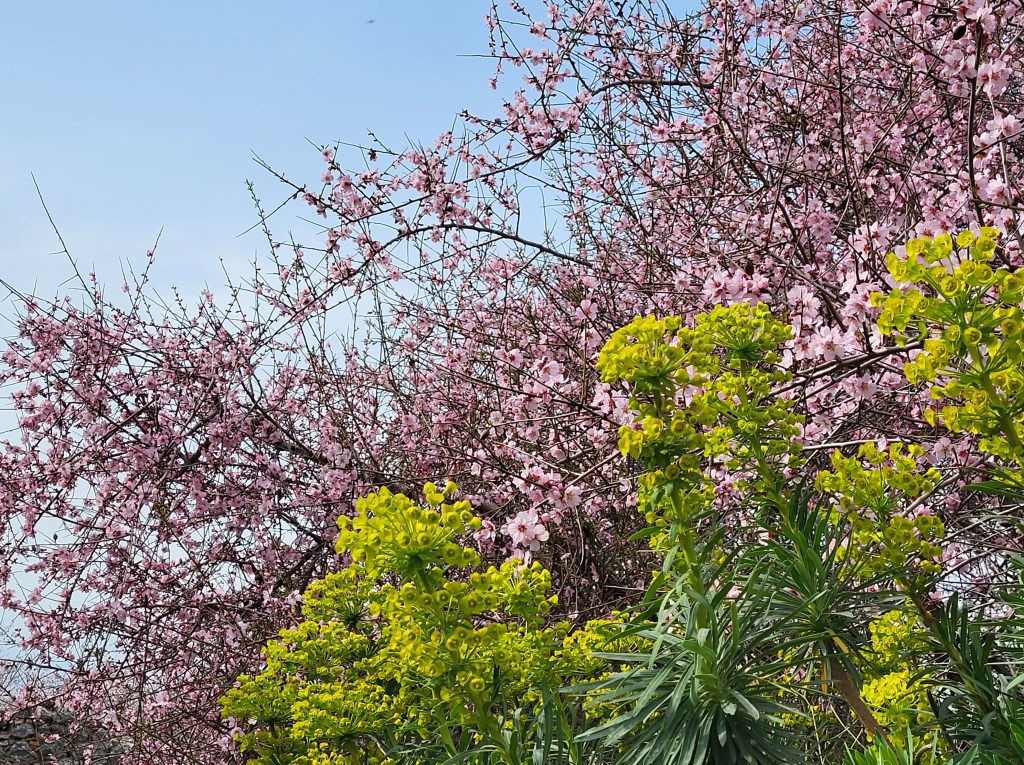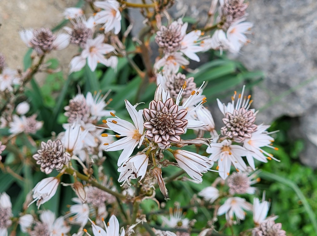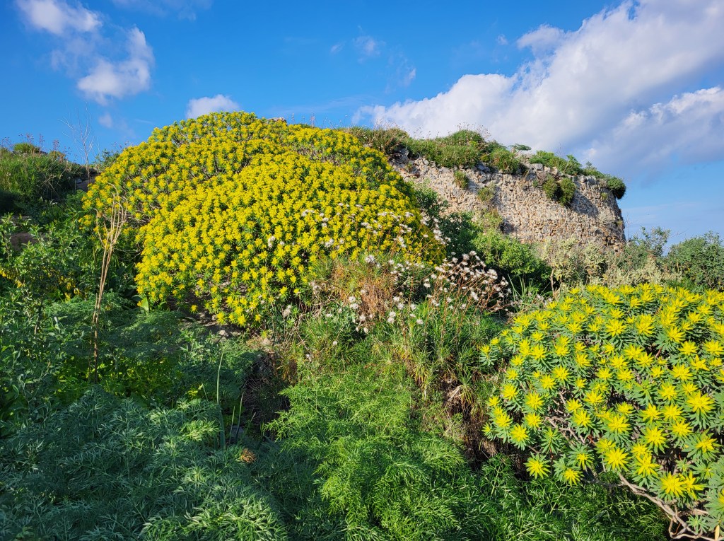 Viele Orchideen und riesige Mengen an Sträuchern der Wolfsmilch bis hin zum herausragenden riesigen Fenchel. Ich kann gar nicht alle benennen, es blüht hier soviel und mein botanisches Wissen ist da leider auch etwas überfordert