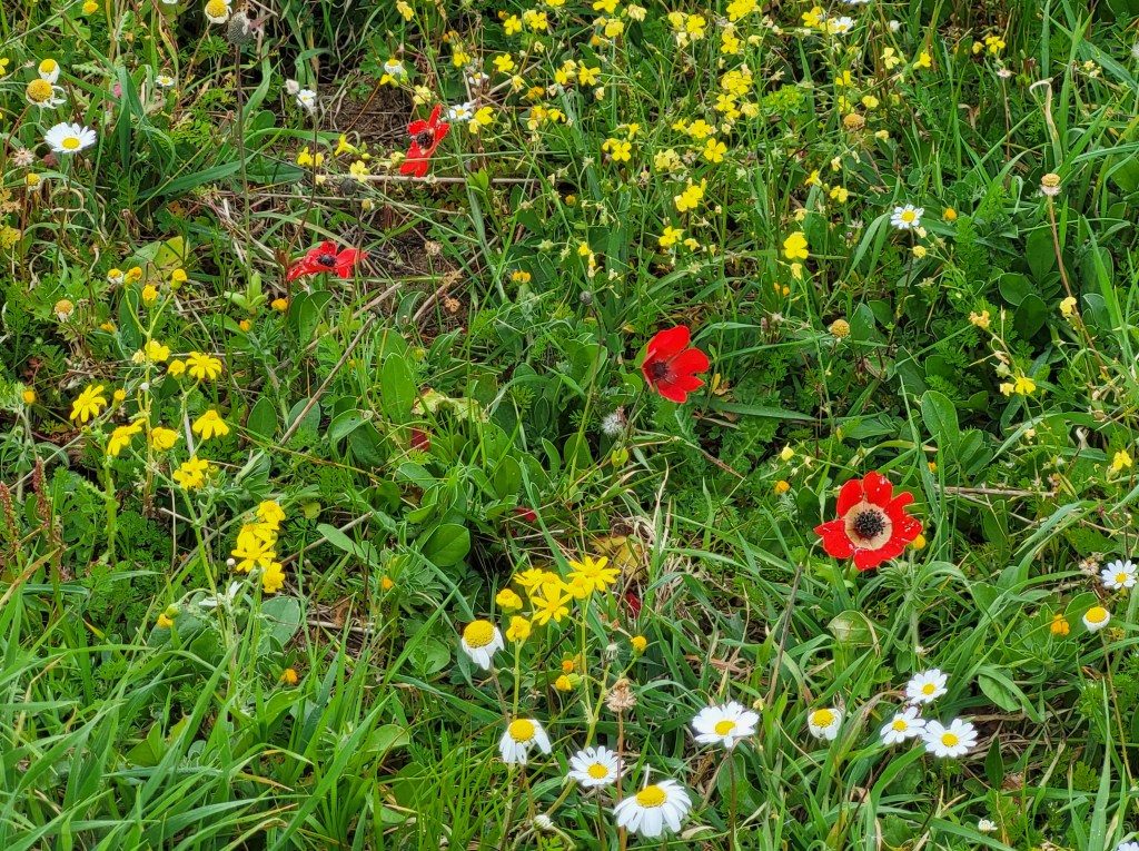 Die Peloponnes fängt bereits im November an richtig saftig grün zu werden. Im Dezember kommen dann langsam schon vereinzelt Blüten zum Vorschein, wie z. B. die Anemonen.