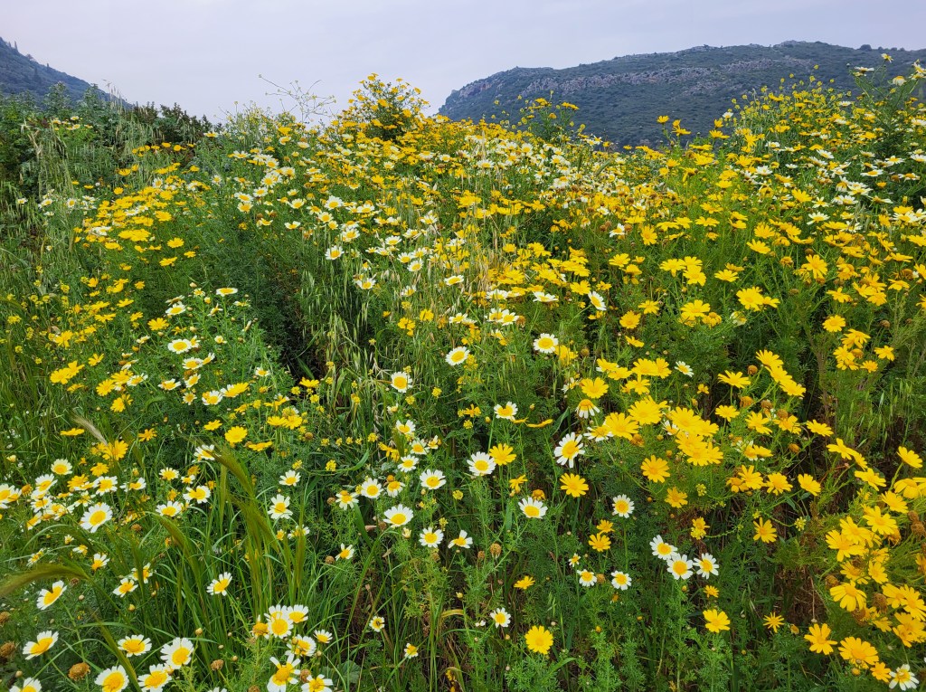 Ich kann es immer wieder nur betonen, es lohnt sich die Peloponnes in dieser Zeit zu bereisen. Der kältesten Monat würde ich sagen war der Februar, aber auch nur für 1 Woche. Am blütenreichsten ist die Mani, hier finden sich riesige Blütenteppiche.